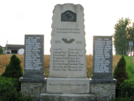 Denkmal für die Gefallenen des 1. Weltkriegs neben der Hauptstraße, die von Oppeln nach Neustadt führt.