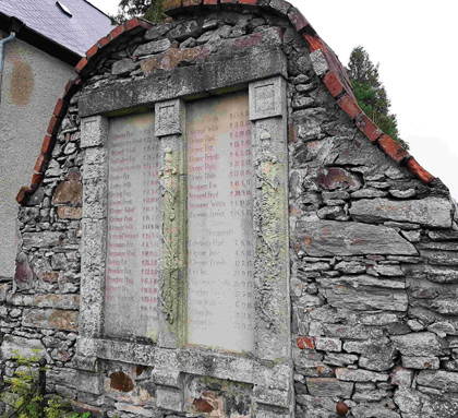 Zwei Namenstafeln sind in die Kirchhofmauer eingearbeitet und nach oben herausragend rund umschlossen.