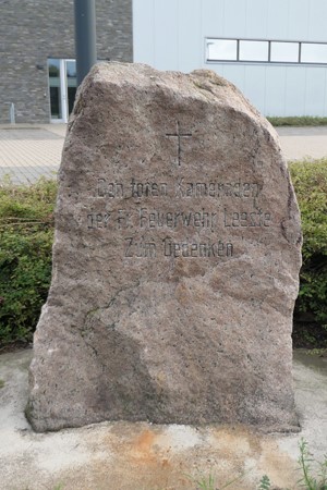 Gedenkstein für die toten Kameraden auf dem Gelände der Freiwilligen Feuerwehr Leeste in der Angelser Straße.