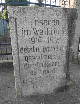 Rest eines Denkmals für die Gefallenen des 1. Weltkriegs vor einem Privatgrundstück an der Hauptstraße.