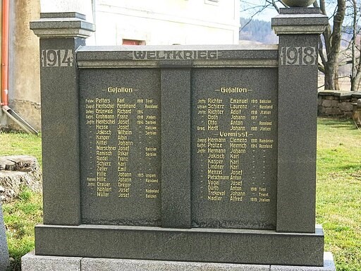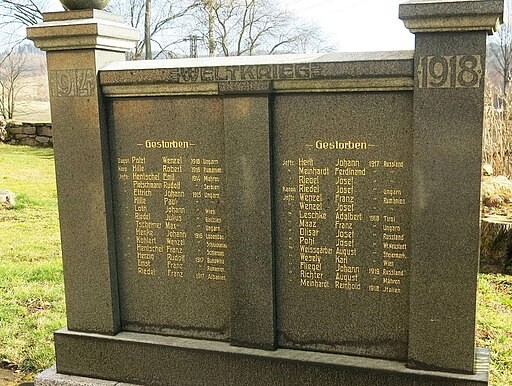 Stele und Denkmal für Gefallene der Kriege 1859, 1866 und Ersten Weltkrieg.