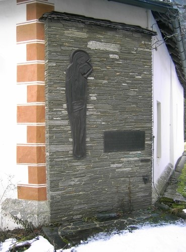 Grabmal von zwei Kärntner Abwehrkämpfern an der Kirchenmauer der Filialkirche Hl. Magdalena auf der Sapotnica bzw. dem Kleinen Loiblpaß.
