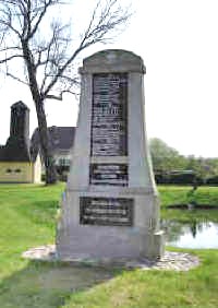 Ehrenmal an der Straße Dorfdamm. Eine sich nach oben verjüngende Steinplatte mit schwarzen Tafeln.