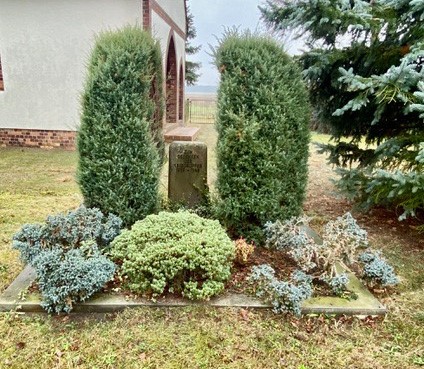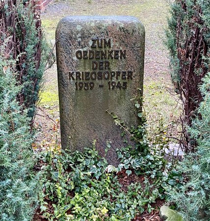 Stele ohne Namen auf dem Friedhof, linksseitig der Feierhalle.