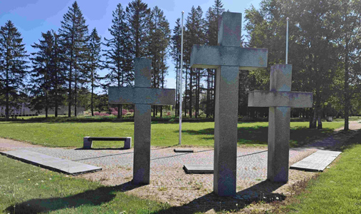 Ein weiterer Gedenkplatz mit drei Hochkreuzen am nordwestlichen Ende gedenkt der verschiedenen Einheiten
