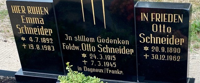 Feldwebel | SCHNEIDER | Otto | 24.03.1915 | 07.03.1945 Dagneux, Frankreich |