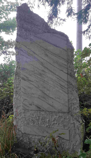 Aufgerichtete Granitplatte die oben schräg und spitz zuläuft.