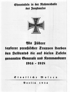 Ehrentafeln in der Ruhmeshalle des Zeughauses, Staatliche Museen, Berlin 1934. Ehrentafeln XXXVII bis XXXXVI.