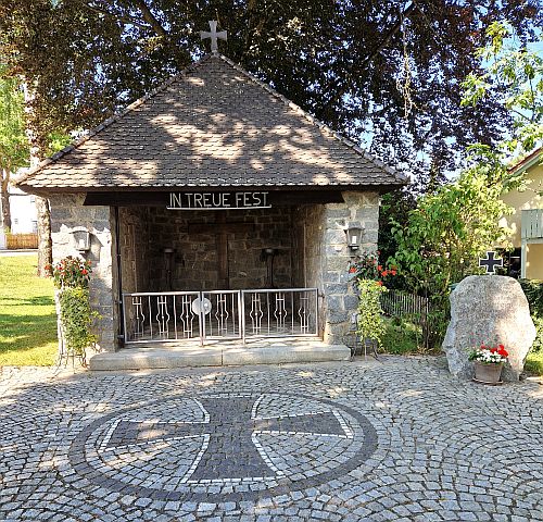 sowie ein Steinfindling mit aufgesetztem deutschen Kreuz.