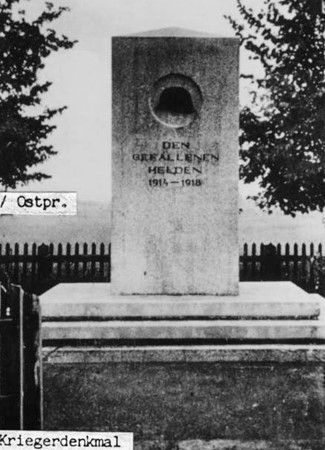 Denkmal für die Gefallenen des Ersten Weltkriegs, abgelegen an der Dorfstraße südlich des Ortes. Breite viereckige Stele mit