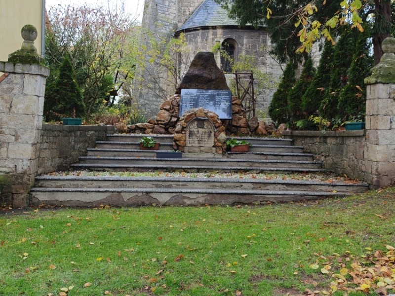 Denkmal mit Gedenkstein und Gedenktafel im Kirchgarten.