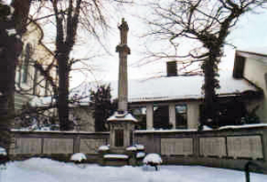 Denkmal nördlich der Pfarrkirche St. Andreas: vier Tafeln an der Marien-Säule für die Gefallenen und Mitkämpfer von 1870/71.