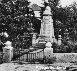 Darauf befand sich bis 1945 eine hohe verzierte Stele mit krönender Stahlhelm-Plastik.