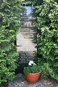 Eine weitere Stele an anderer Stelle des Friedhofes ist Gestorbenen im Konzentrationslager und im Internierungslager sowie vier unbekannte deutsche Soldaten gewidmet.