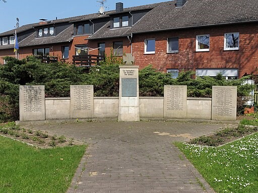 Links und rechts von der Mitte je 2 weitere Säulen für die Kriegstoten des Zweiten Weltlriegs.