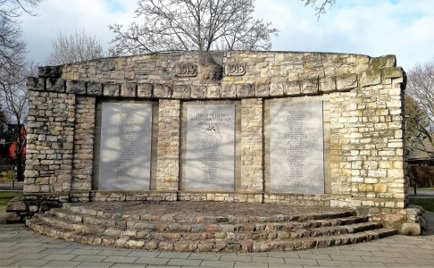 den alten Steinen passten. Drei neue Granittafeln mit den Namen aller Gefallenen wurden angebracht und mit Acrylplatten verkleidet, die als Graffitischutz dienen.