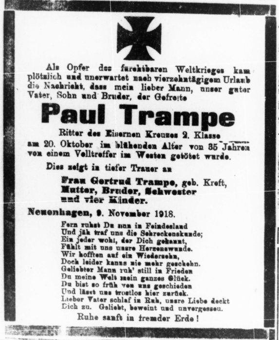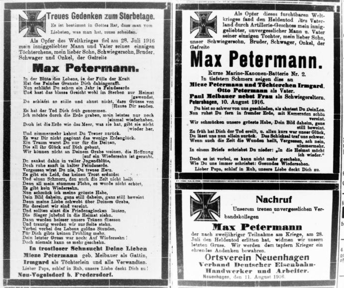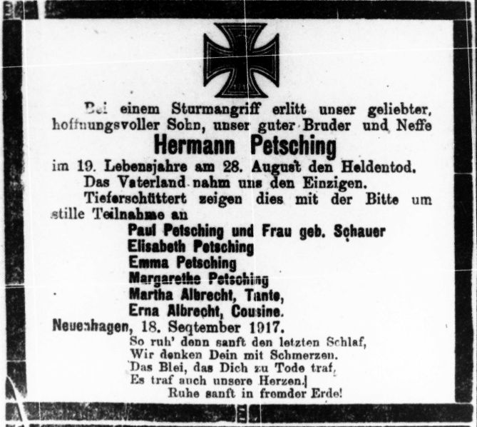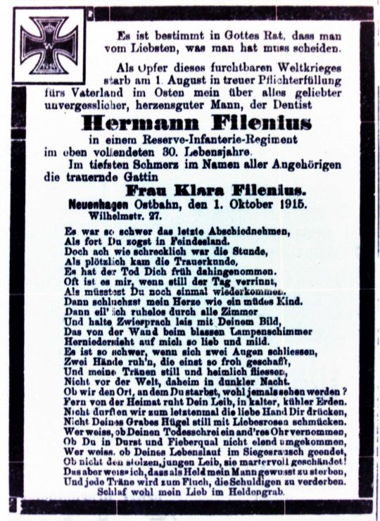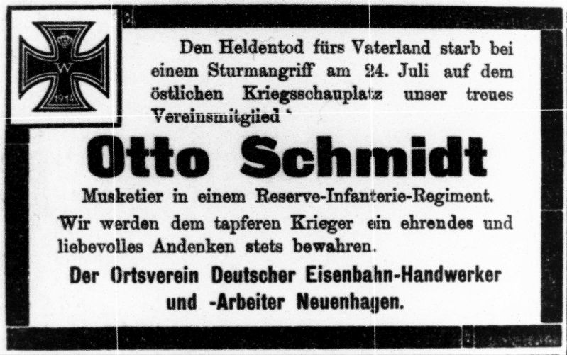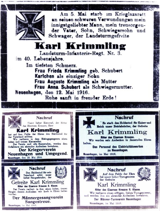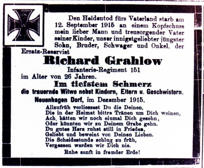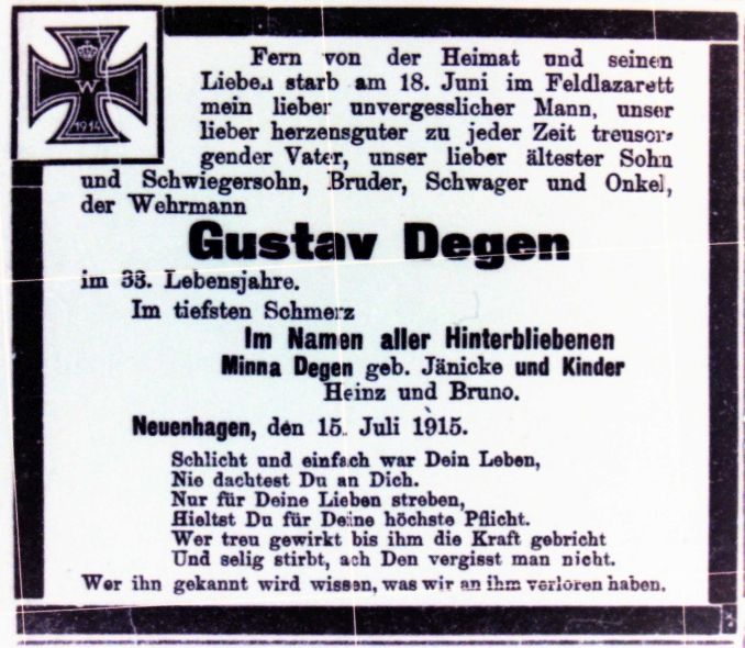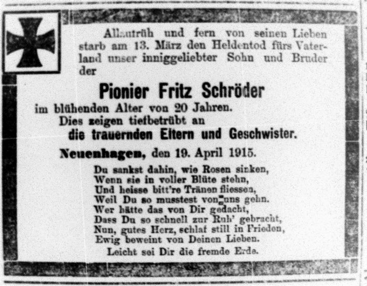 im Verwaltungsbericht der Gemeinde Neuenhagen von 1920 bis 1924 (S. 28/29) - deshalb in Klammern. Zudem wurden die am Denkmal verewigten Vornamen -