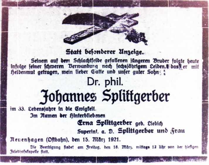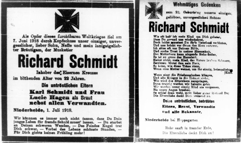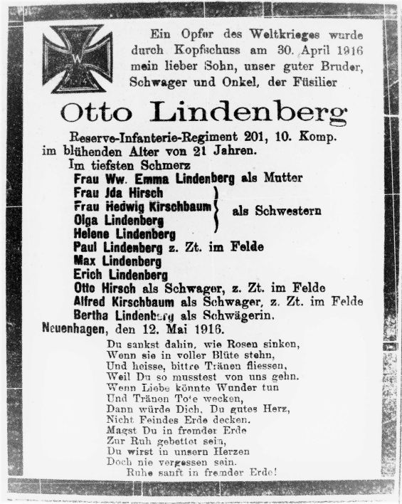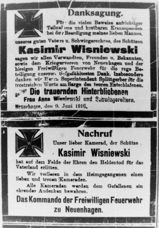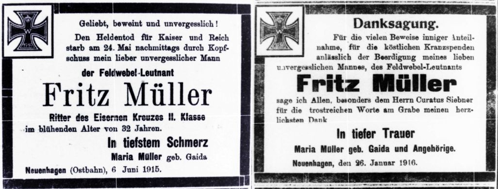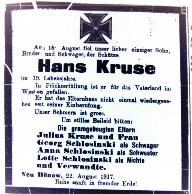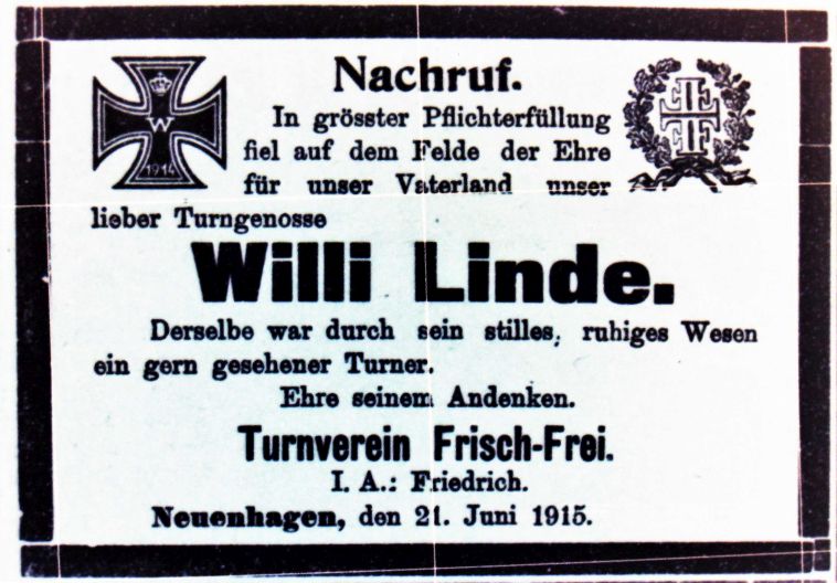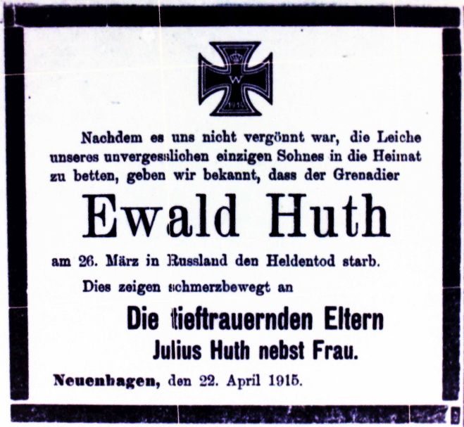 im Verwaltungsbericht der Gemeinde Neuenhagen von 1920 bis 1924 (S. 28/29) - deshalb in Klammern. Zudem wurden die am Denkmal verewigten Vornamen -