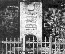 Denkmal für die Gefallenen des Ersten Weltkrieges bis 1945 in Neugericht. Heutiger Verbleib nicht bekannt.