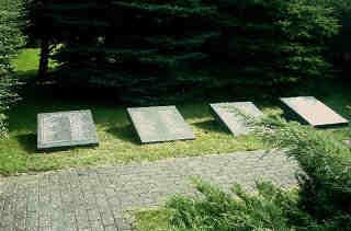 Stele auf dem Neuhofer Friedhof (Erster Weltkrieg), Gedenksteine auf dem Boden (Zweiter Weltkrieg).