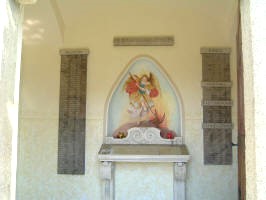 Steintafeln Zweiter Weltkrieg in einer Kapelle auf dem Friedhof in Neumark.