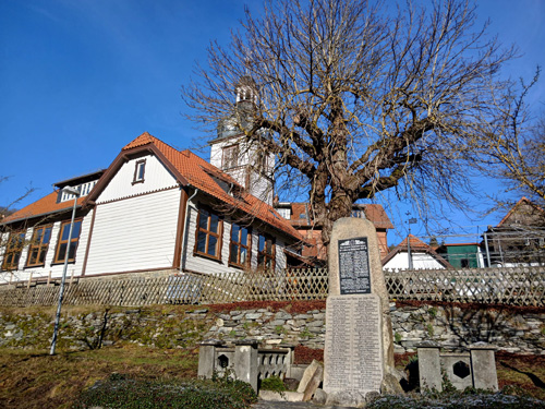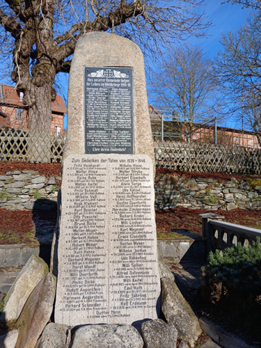 darunter ist eine Steintafel mit den Namen des 2. Weltkriegs angebracht.