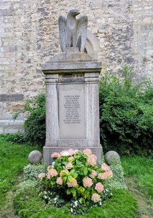 In den Sockel wurde später eine Tafel mit den Namen der Gefallenen des Zweiten Weltkrieges eingefügt.