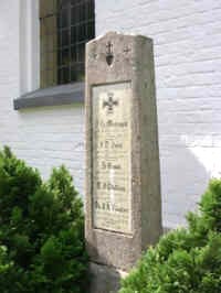 An der Südseite der Kirche in Nübel eine Stele mit den Namen von 5 Kriegstoten von 1870/71.