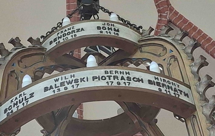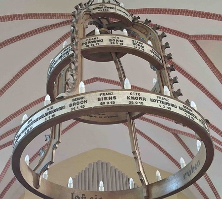 Gedenk-Leuchter für die Gefallenen des Ersten Weltkriegs in der örtlichen Kirche.