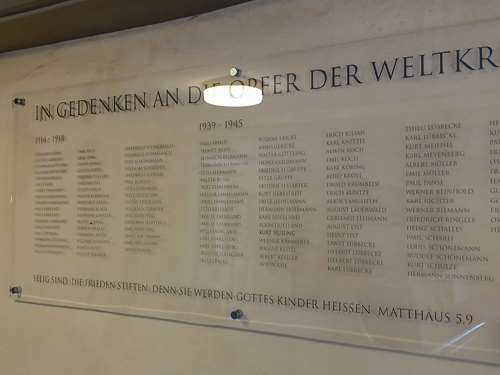 In der Kirche befindet sich eine Gedenktafel aus Glas für die Gefallenen beider Weltkriege.