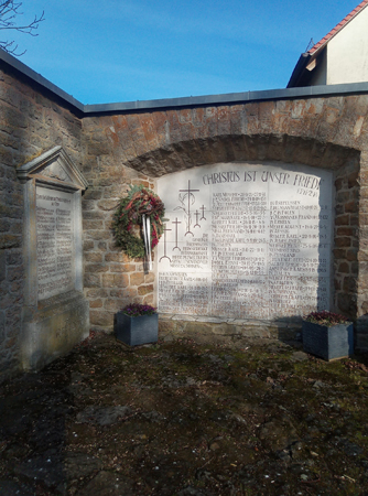 Standort des Denkmals ist im Friedhof links vom Eingang.