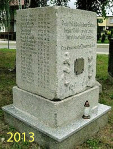 Nach dem 2. Weltkrieg entfernten Polen das Denkmal. 2012 wurde es an alter Stelle wieder errichtet. Auf der linken und rechten Seite