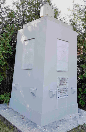 Denkmal für die Gefallenen des 1. Weltkriegs in einem Wäldchen am nördlichen Dorfrand, an der Straße nach Komprachcice.