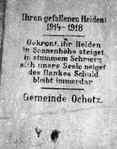 Eine kleine Widmungstafel für die Gefallenen des 2. Weltkriegs wurde nach 1990 angebracht (ohne Namen).