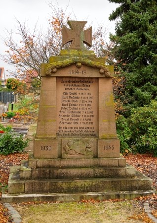 Auf dem Friedhof von Osloß (Ecke Hauptstr./Osterbergweg) ist ein Denkmal für die Gefallenen beider Weltkriege aufgestellt,