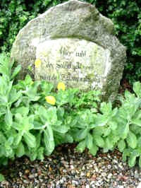 Im Vorgarten des Hauses Nydamvej 40 ein aufrechtstehender Granitstein mit eingelegter Marmorplatte (Ahrens);