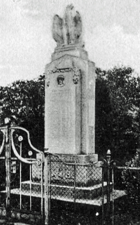 Abgestufte breite Stele mit krönendem Kreuz (früher von einem Adler gekrönt).