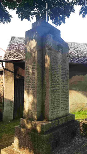 Denkmal für die Gefallenen des 1. Weltkriegs an der Straße zur Kirche.