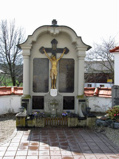 Denkmal für beide Weltkriege auf dem Friedhof, Ehrentafel für den 2. Weltkrieg in der nahegelegenen Kirche St. Petrus und Paulus.