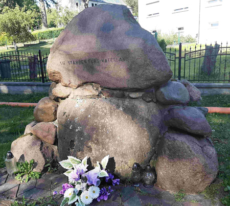 Denkmal für die Gefallenen des 1. Weltkriegs an einer Kreuzung an der Dorfstraße.