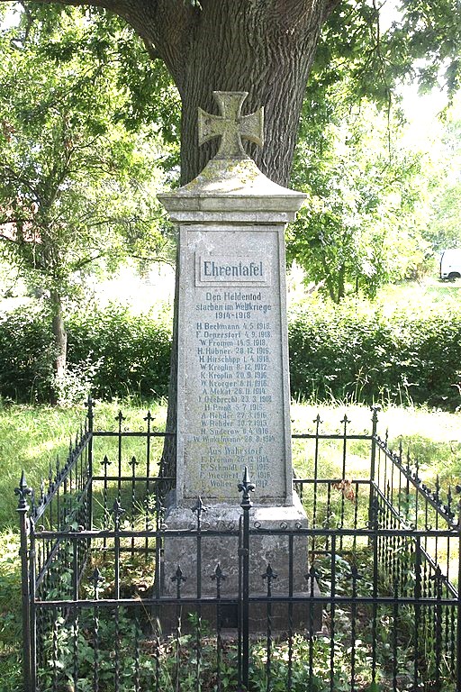 Kriegerdenkmal Erster Weltkrieg mit Friedenseiche an der Alten Dorfstraße.