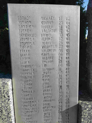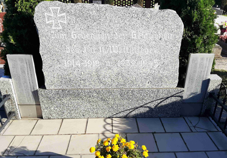 Denkmal für die Gefallenen des 2. Weltkriegs auf dem Friedhof, angelegt wie eine Grabstätte.