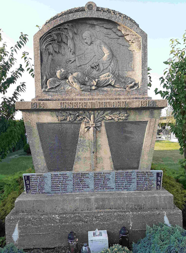 Denkmal für die Gefallenen des 1. und 2. Weltkriegs auf dem örtlichen Friedhof.
