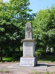 An der Straße Doppelreihe: Obelisk mit Lorbeerkranz und Eisernem Kreuz für den Krieg 1870/71 und dem Ersten Weltkrieg.