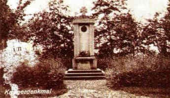 Es ist ein schlichter Block, welcher an den Seiten von vier kantigen Säulen umstellt ist. Auf seinem Kopf befindet sich das Eiserne Kreuz mit den Jahreszahlen des
