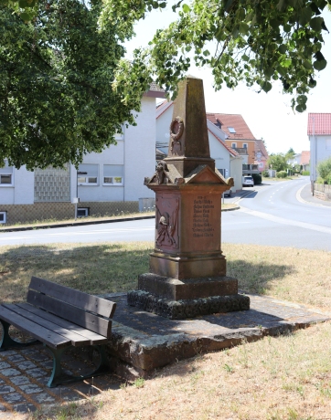 Auf einer kleinen Rasenfläche an der Ortsdurchfahrt befindet sich das Denkmal aus Sandstein für 1866/1870-71.
