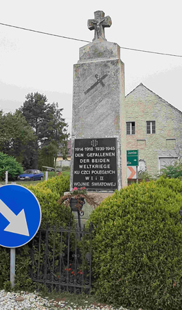 Denkmal errichtet für die Gefallenen des 1. Weltkriegs auf der zentralen Straßenkreuzung des Ortes.
