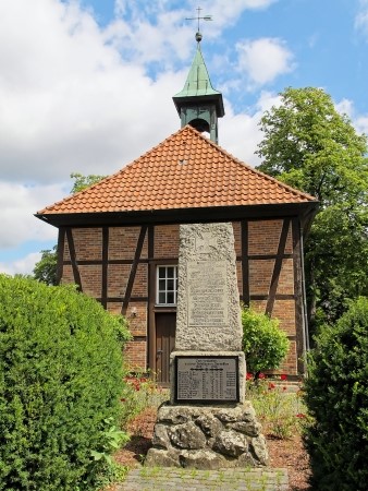 Auf einem kleinen gepflegten Areal vor der Kapelle im Peiner Stadtteil Röhrse (Straße „Im Orte“) steht ein