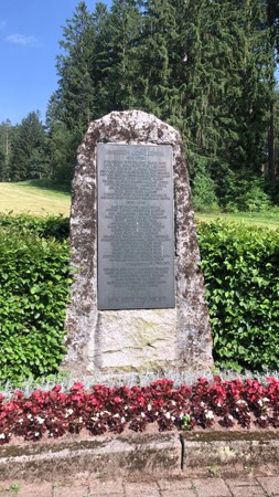 Denkmal für die Opfer der Weltkriege: Sandsteinblock mit Kupfertafel.