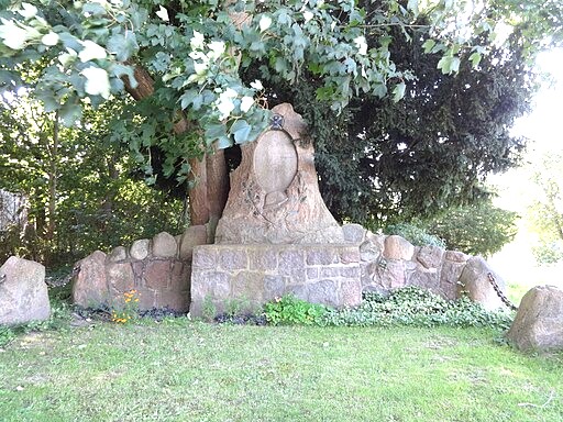 Zwei Tafeln in der Kirche mit Namen der Gefallenen von 1870/71, hinter der Kirche ein großer Findling (Erster Weltkrieg) auf einem gemauerten Feldsteinsockel.
